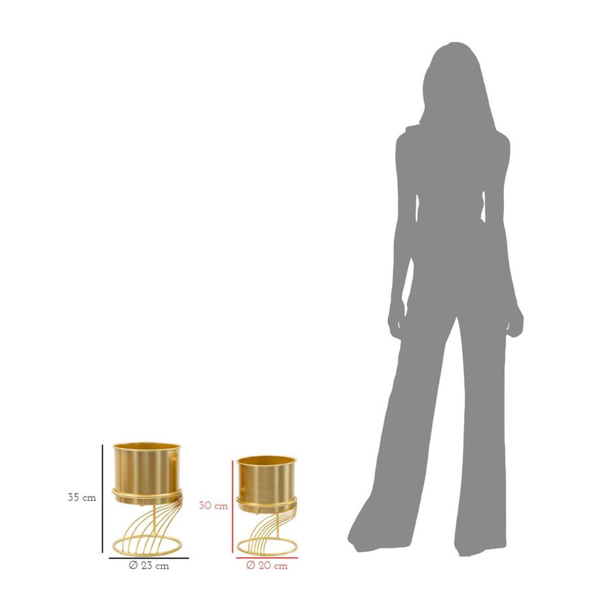| Description | Set of two golden metal pot holders with spiral lines that evoke movement and harmony, perfect for adding a touch of class to your decor. |