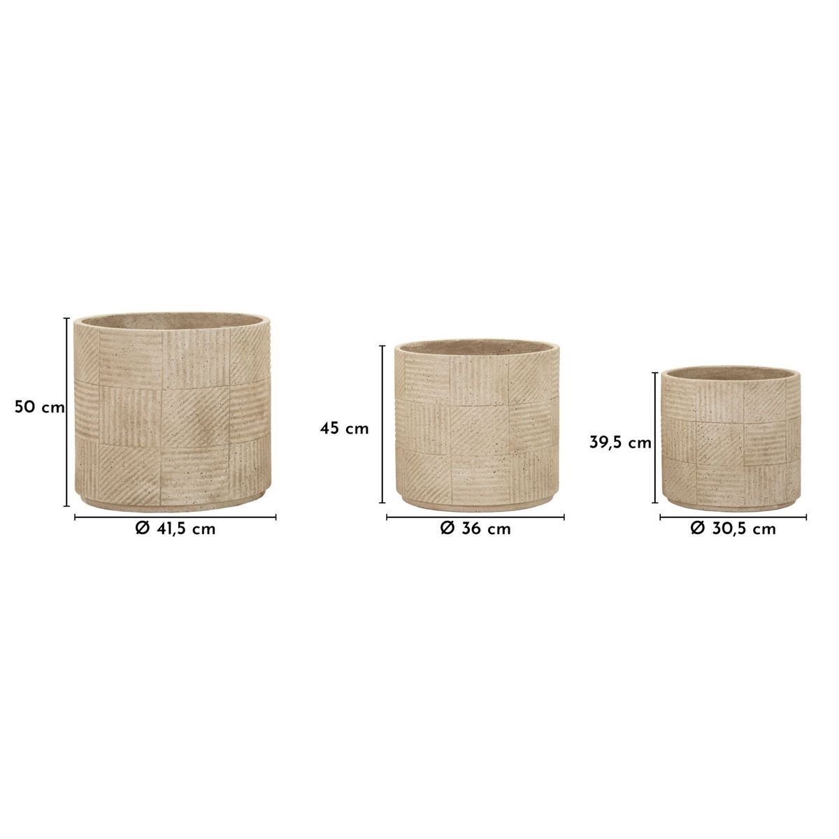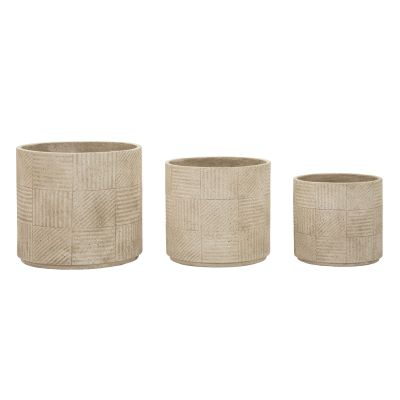 | Description | Three vases with a refined design, characterized by engraved surfaces that create delicate plays of light and shadow. The essential shapes and natural color evoke the raw and authentic material of stone, bringing balance and harmony to any outdoor space. Strength and beauty coexist in an elegant and timeless ensemble. |