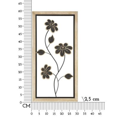| Description | 3D decorative wall panel in metal and wood composed of elegant flowers enclosed in a rectangular wooden frame. |