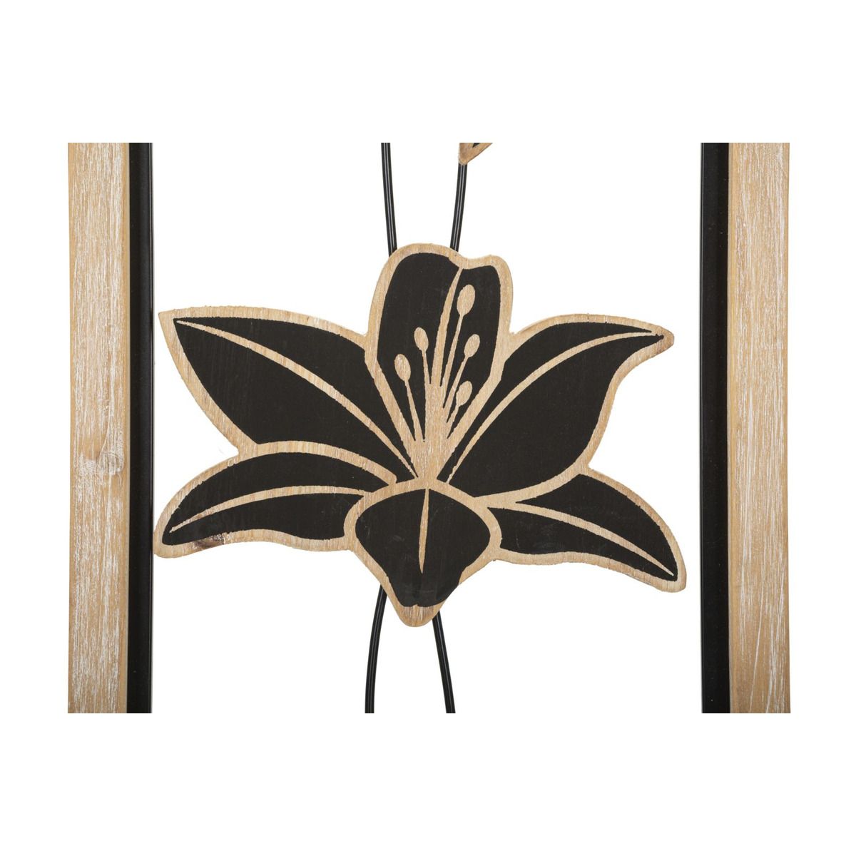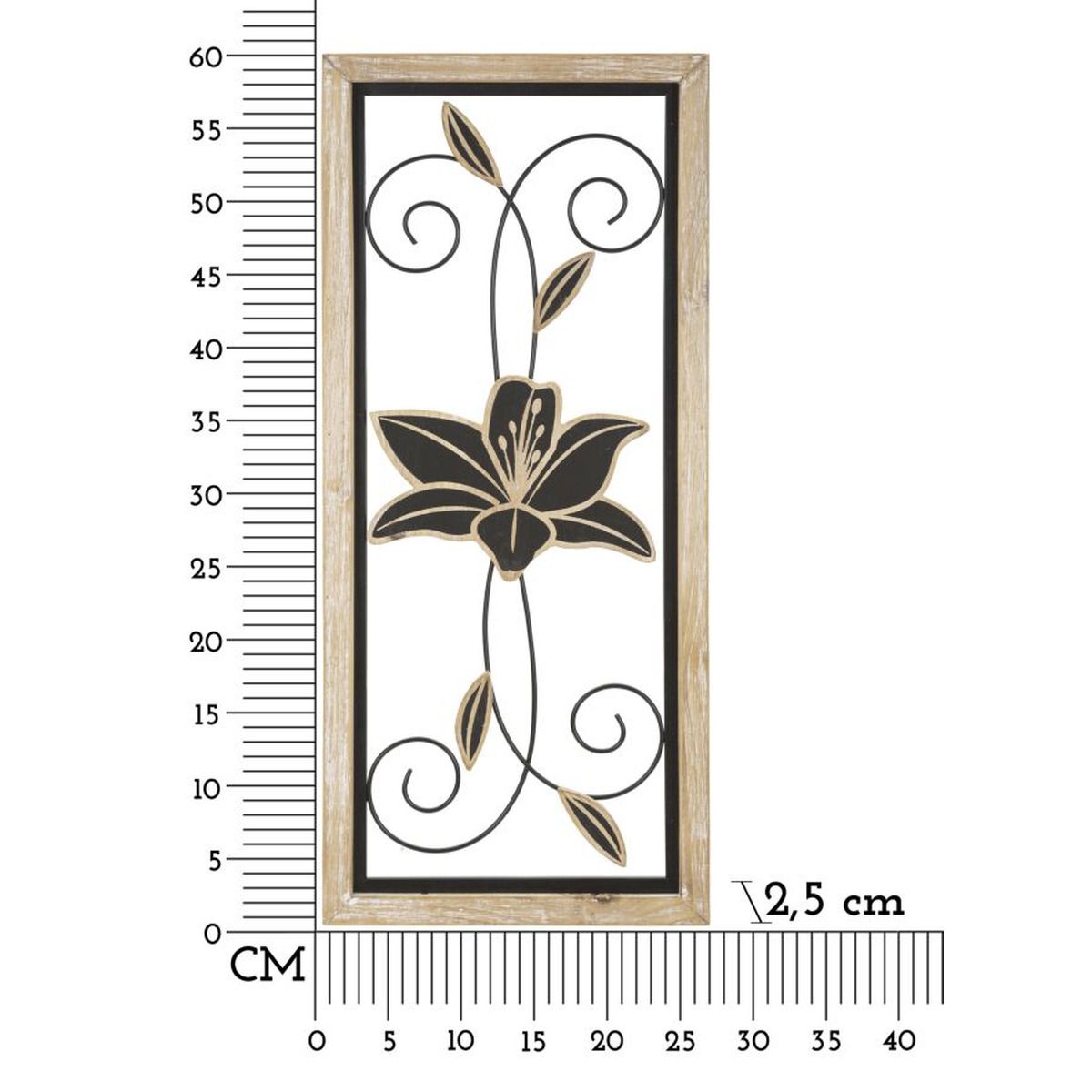 | Description | 3D decorative wall panel in metal and wood composed of elegant flowers enclosed in a rectangular wooden frame. |