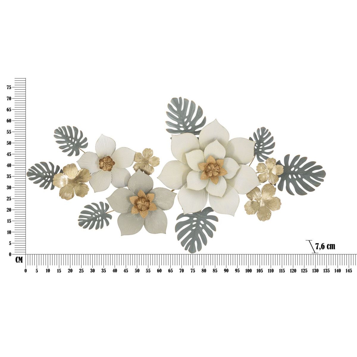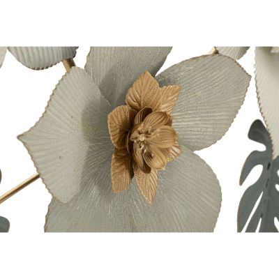 | Description | 3D decorative wall panel composed of flowers and leaves in soft, suffused colors embellished with golden finishes. |