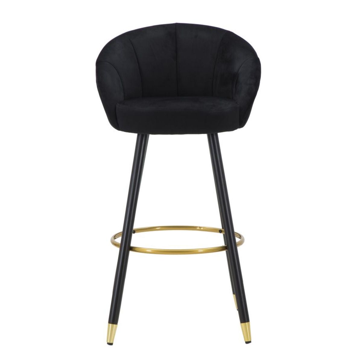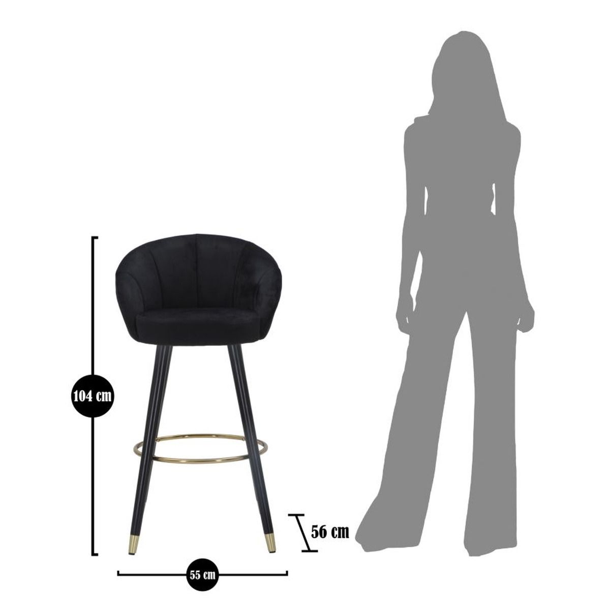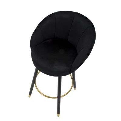 | Description | Bar stool in black padded velvet with wooden legs and circular footrest and golden metal leg decorations that give a touch of elegance and refinement. |