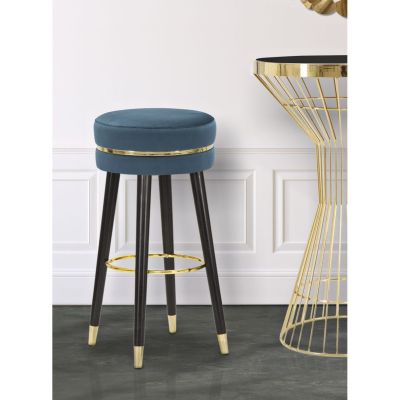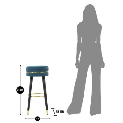 | Description | Bar stool in wood and teal velvet. Seats with a silver finish inspired by the dressing rooms of Hollywood's greatest divas. Ideal for placing in the bedroom or living room to feel like a star. |