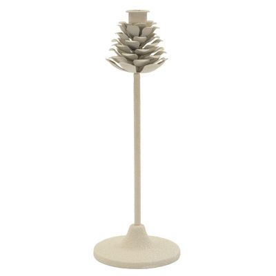 | Description | Inspired by the shape of a stylized pine cone, this tall candle holder is a natural sculpture that evokes the forest and adds verticality to the composition. |