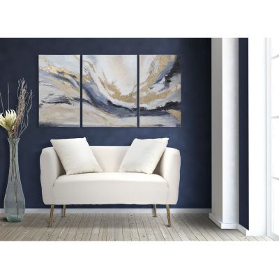| Description | Triptych of paintings on canvas with wooden frame. Original abstract paintings with hypnotic lines and warm colors that give a unique and elegant style. A touch of art right in your home. |