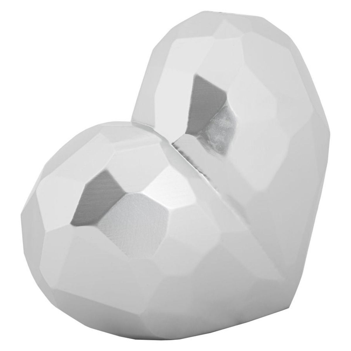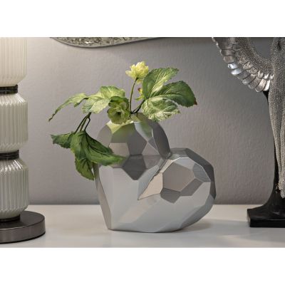 | Description | Elegant silver resin vase in the shape of a heart with a square design reminiscent of cubism. |