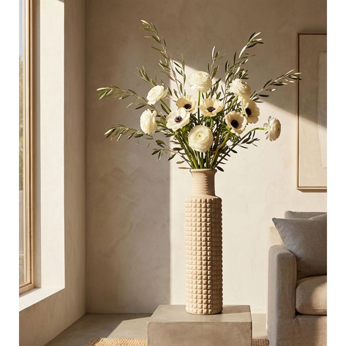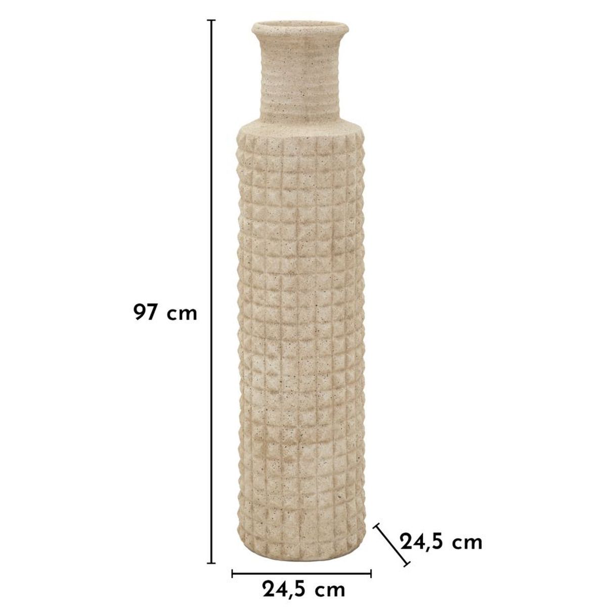 | Description | A tall, sturdy vase with a sandblasted surface reminiscent of natural stone. Elegant and durable, it is perfect for gardens and spectacular entrances. |