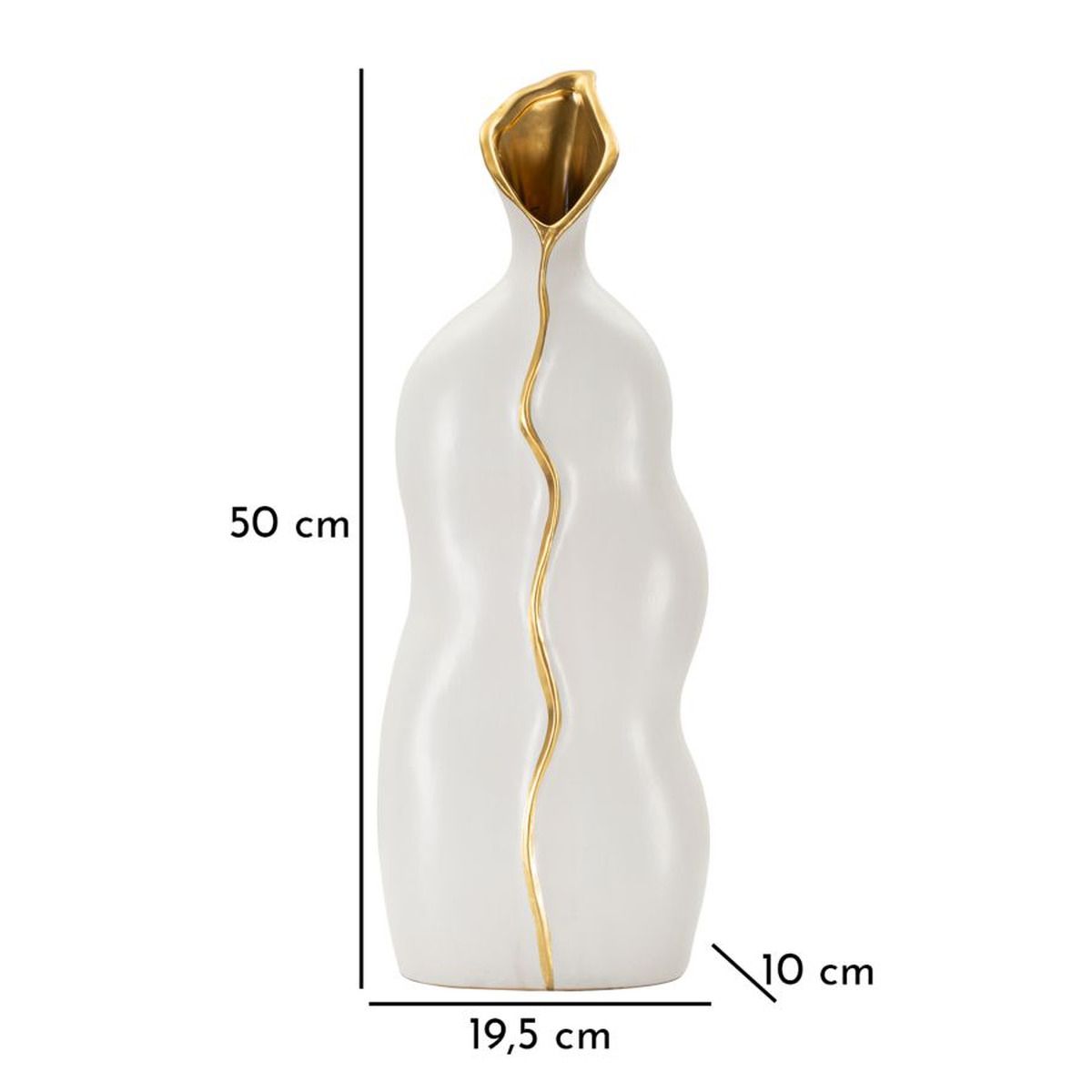 | Description | Vase with sinuous shapes, embellished with gold details that shine with their own light, evoking elegance and warmth in any environment. |