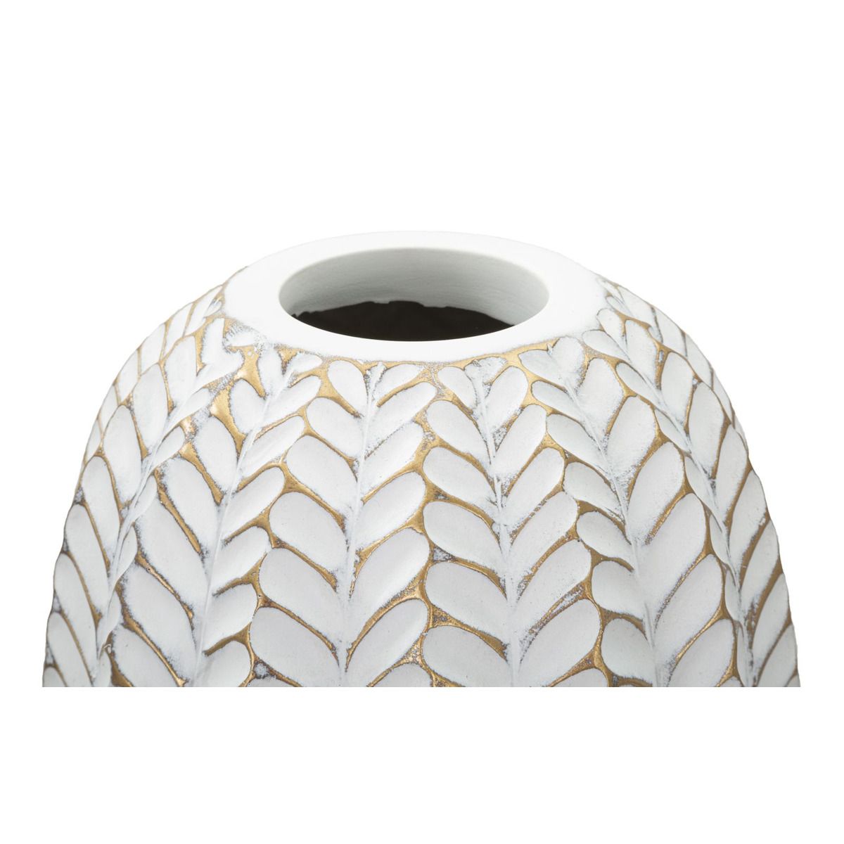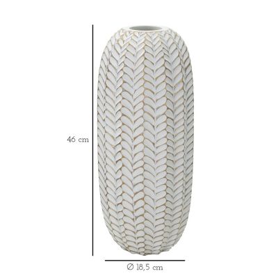 | Description | Resin vase elegantly decorated with carvings reminiscent of small leaves. |