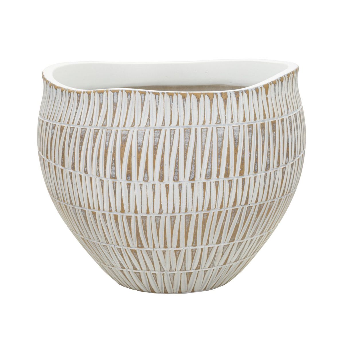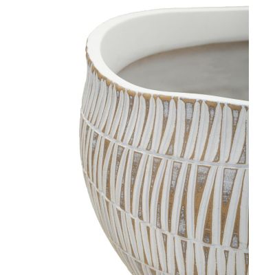 | Description | Resin cachepot elegantly decorated with geometric and linear carvings. |