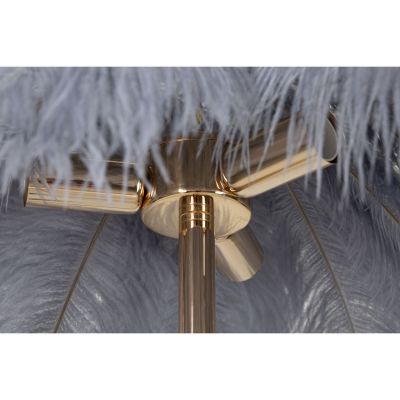 | Description | Golden metal floor lamp with 3 lights and a lampshade made of white feathers. |