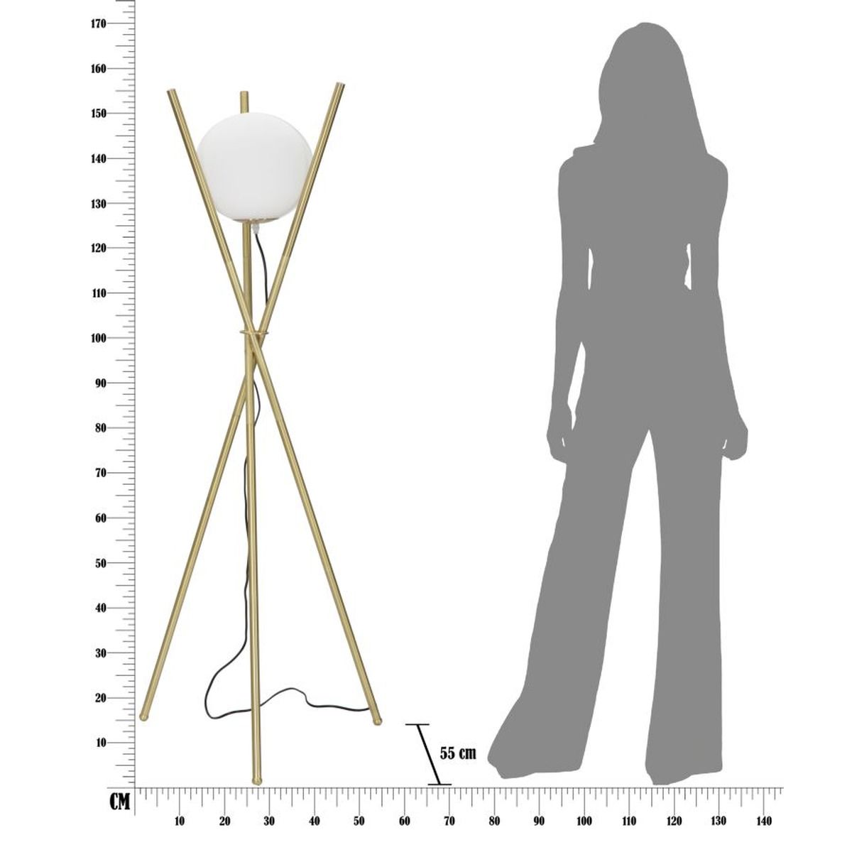 | Description | Gold metal floor lamp with white glass sphere. The essential and minimal lines combine with the elegance of gold to create a unique combination. |