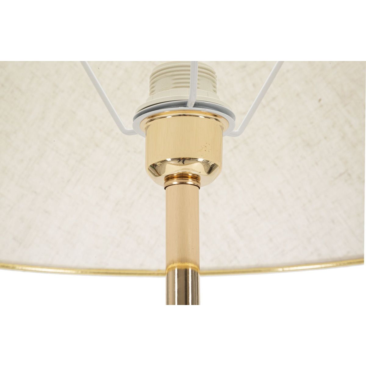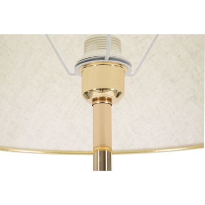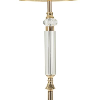 | Description | Elegant golden metal floor lamp with transparent applications. Complete with beige fabric lampshade with golden finishes. |