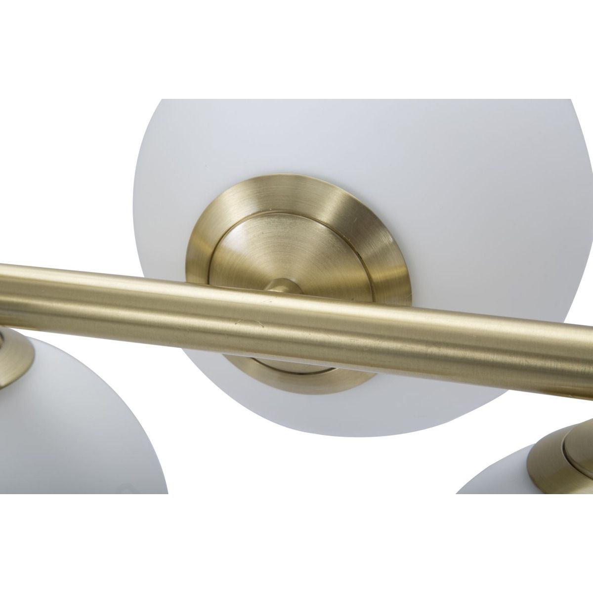 | Description | Chandelier with 7 light points in golden metal with white glass spheres. The particular lines blend perfectly with the elegance of gold to create a unique design. |