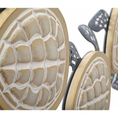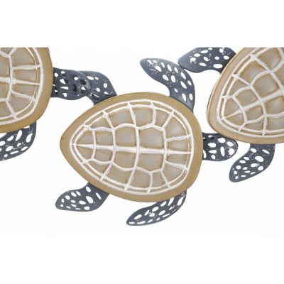 | Description | 3D decorative wall panel in metal and wood depicting swimming sea turtles. |