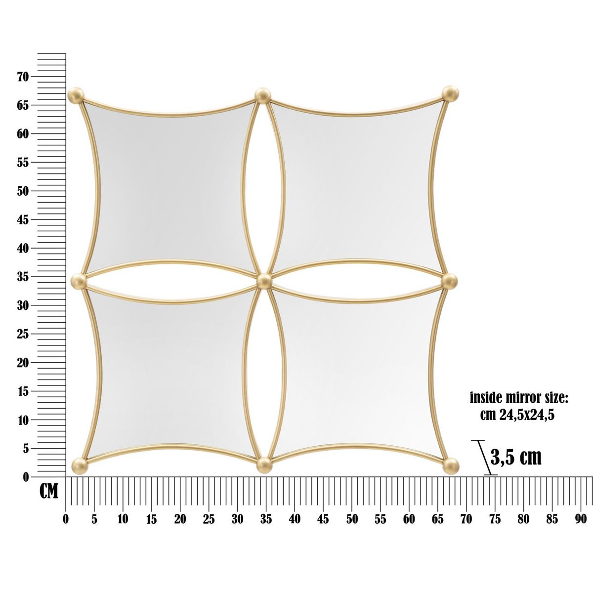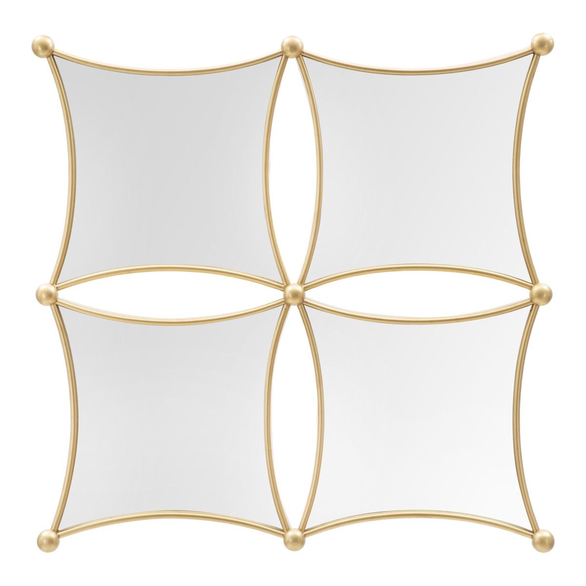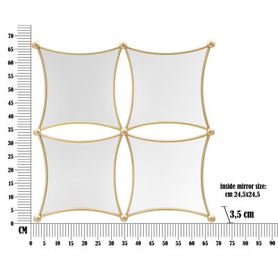 | Description | Set of wall mirrors with a hypnotic geometric design, embellished with elegant gold metal frames. The panel is composed of 4 mirrors. |