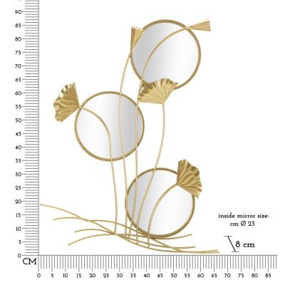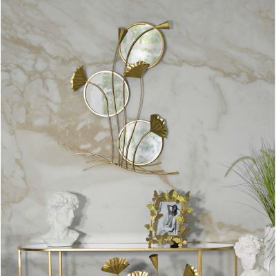| Description | Set of 3 round wall mirrors with golden frames connected by leaf decorations. |