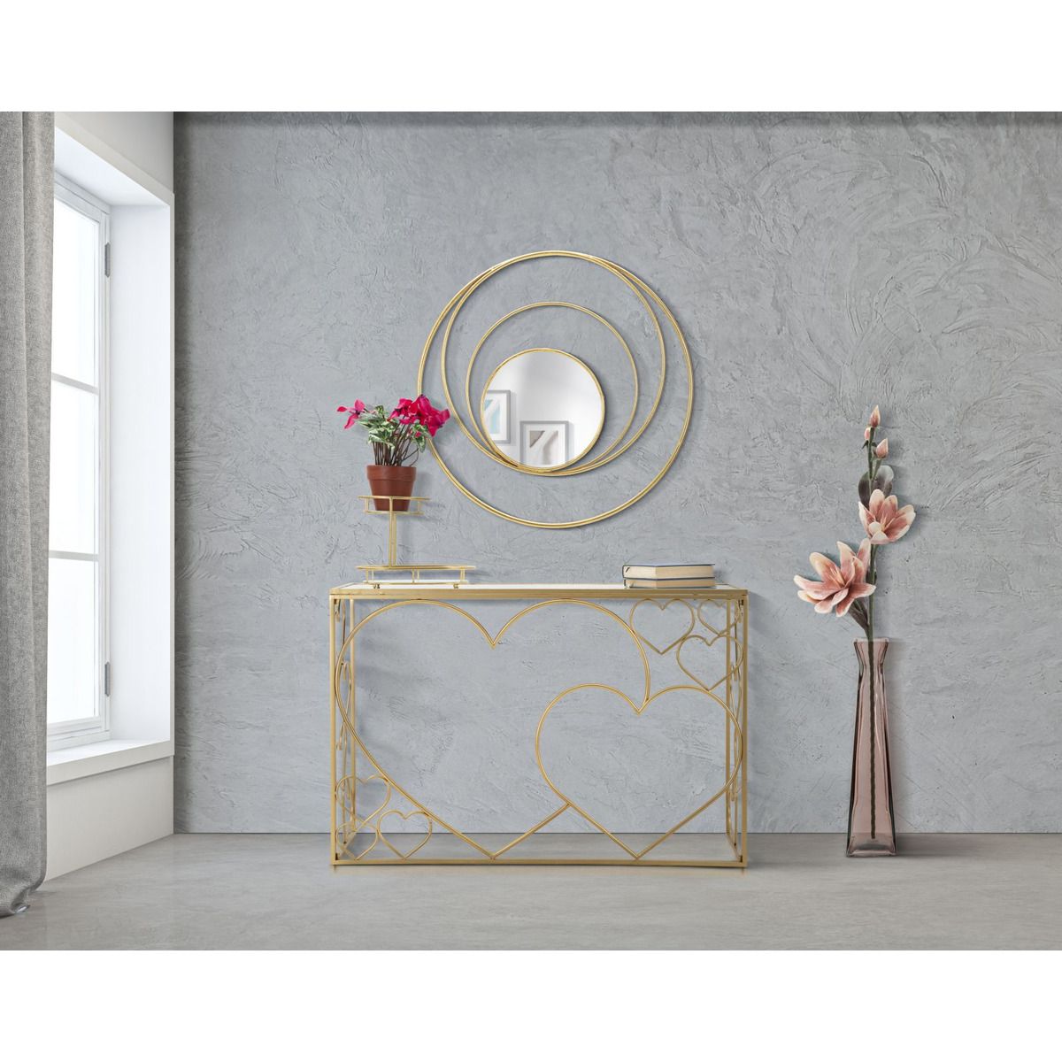 | Description | Round wall mirror with gold frame. The mirror is set in a series of decorative circles that resemble a swirl. The essential lines and special design give a touch of class. |