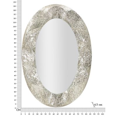 | Description | Oval mirror with an elegant hammered silver frame. Its soft shapes and large surface add light and sophistication to hallways, bedrooms, or living rooms with a refined taste. |