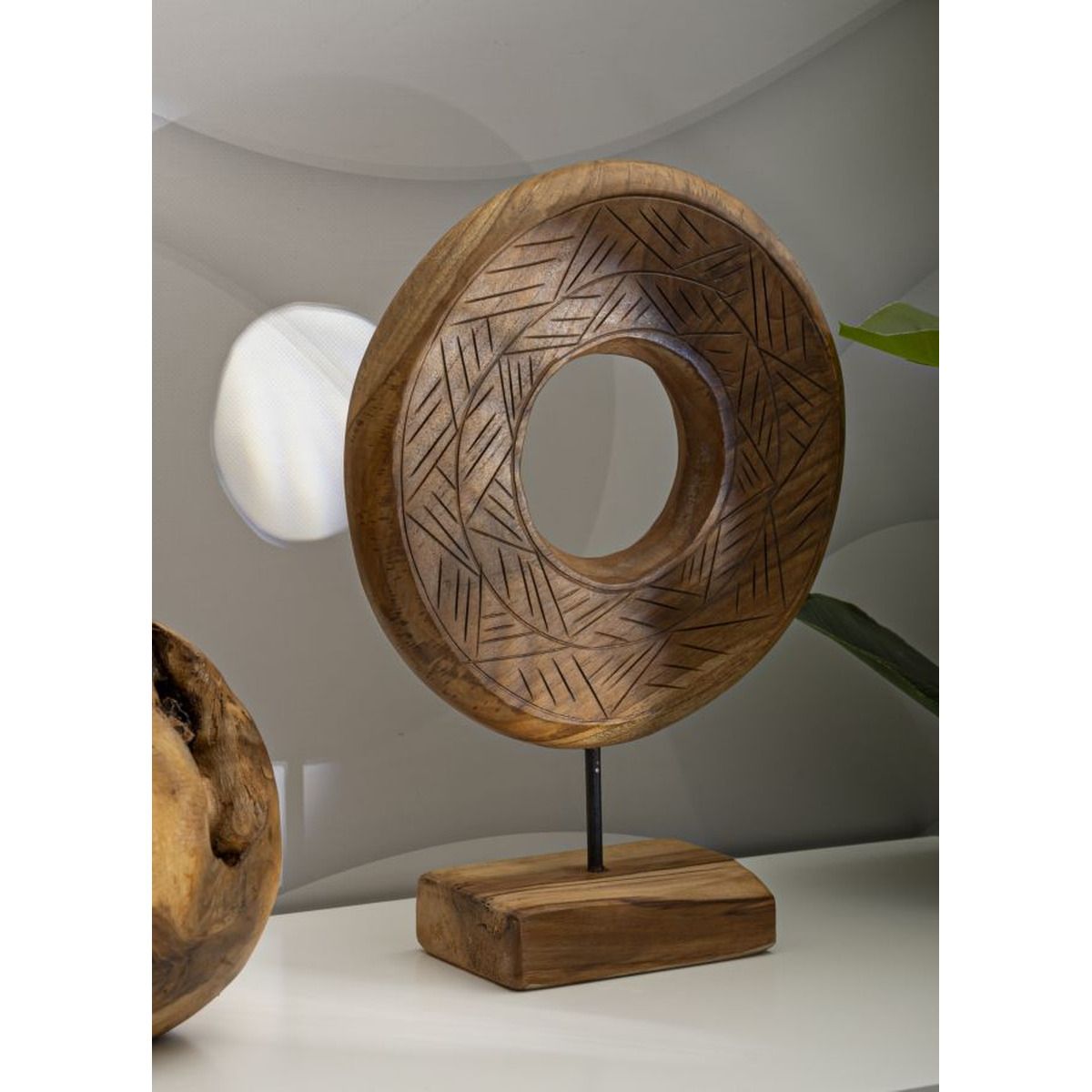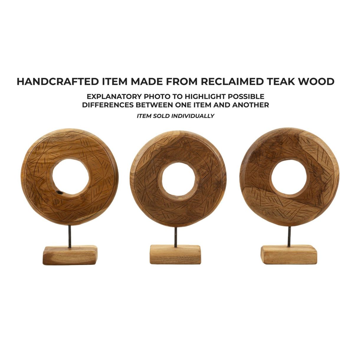 | Description | A round sculpture in recycled teak, finely inlaid with irregular patterns, expressing timeless elegance. Each detail, the result of impeccable craftsmanship, conveys a feeling of warmth and uniqueness, celebrating the beauty of wood and its history. |