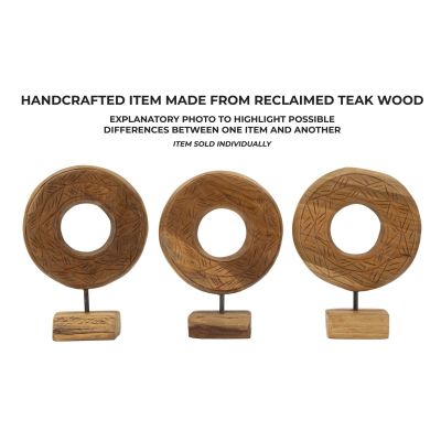 | Description | A round sculpture in recycled teak, finely inlaid with irregular patterns, expressing timeless elegance. Each detail, the result of impeccable craftsmanship, conveys a feeling of warmth and uniqueness, celebrating the beauty of wood and its history. |