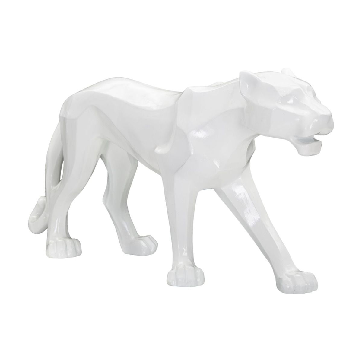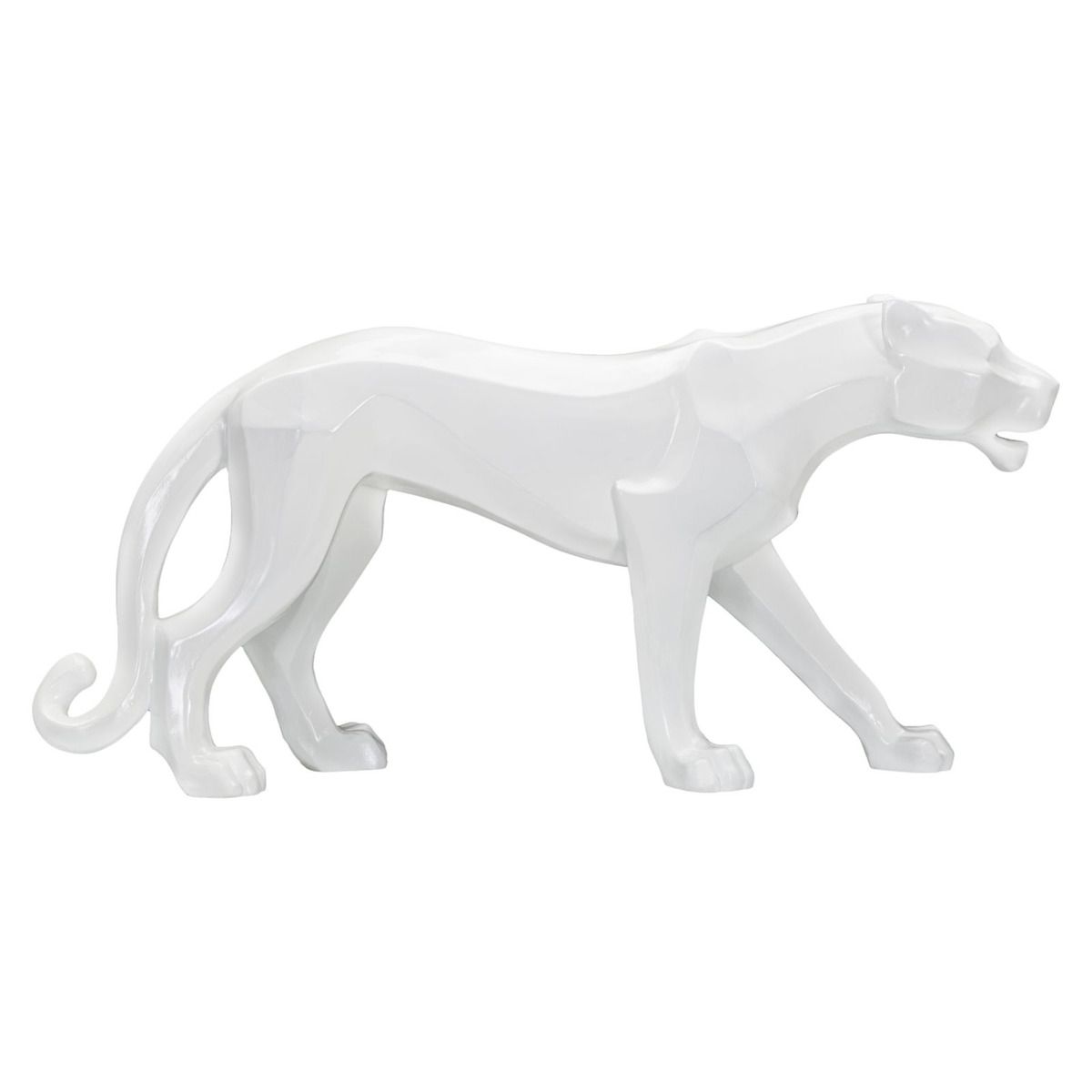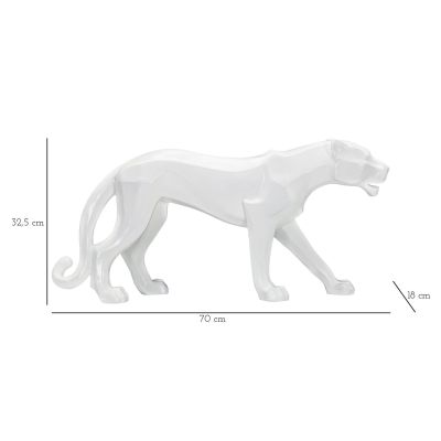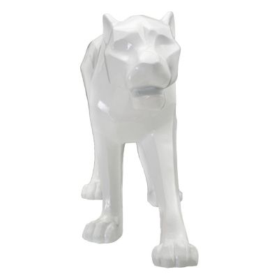 | Description | White panther-shaped statue with cubist-inspired geometric lines. |