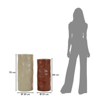 | Description | Slender and sculptural, this set of coffee tables in dove gray and warm brown/brick combines the strength of the material with the elegance of simplicity. The hammered surfaces create dynamic reflections that capture the light, ideal for modern and sophisticated environments. |