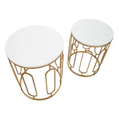 | Description | Set of 2 round small tables in gold metal with white marble top. The elaborate lines of the gold frame blend perfectly with the elegance of white marble to make any living room special. |