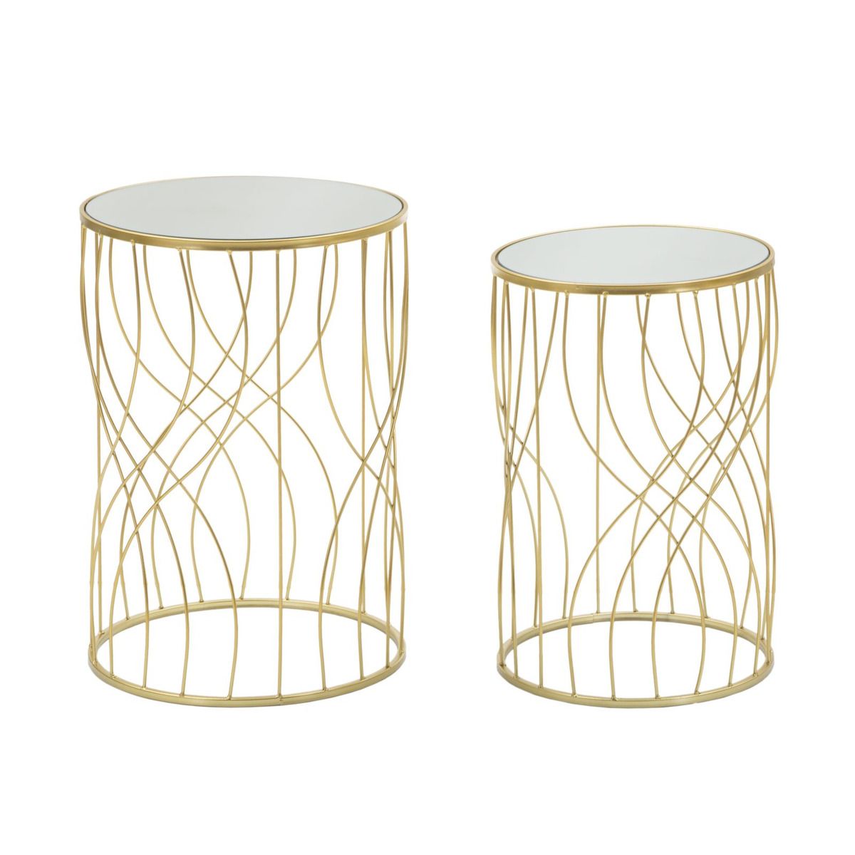 | Description | Pair of round gilt metal small tables with mirrored glass top. The special and elegant linear and geometric decoration gives a unique touch to the article. |
