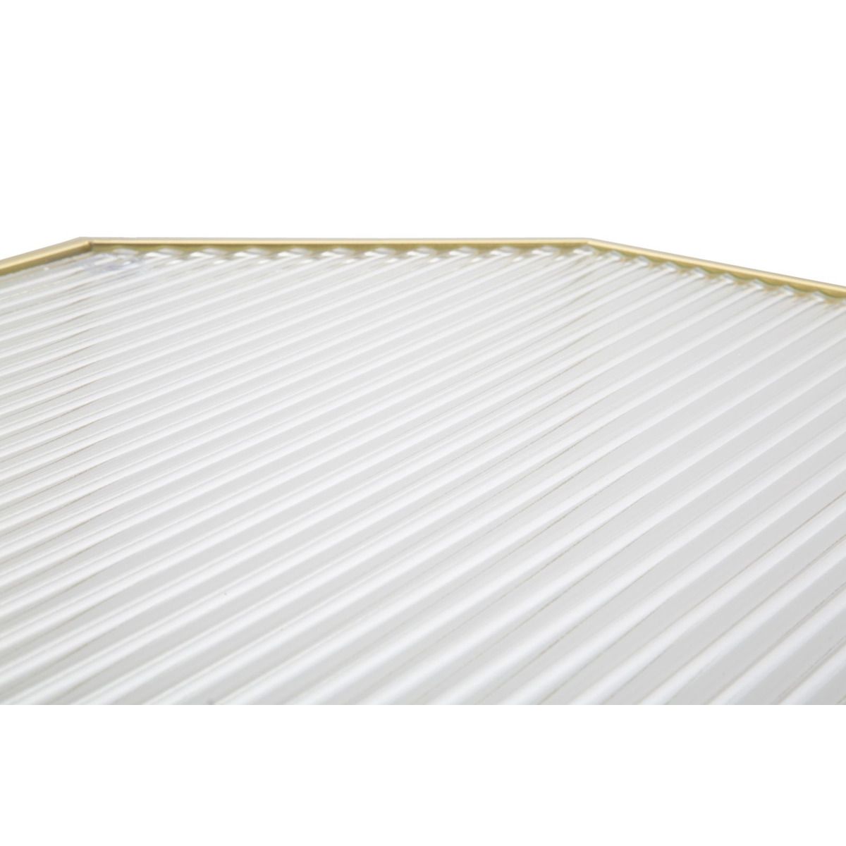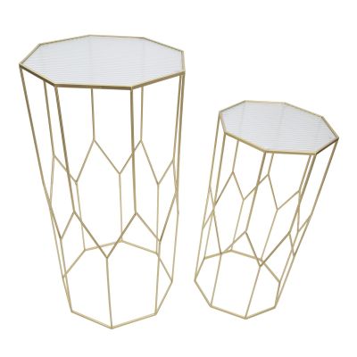 | Description | Pair of small square golden metal telephone stands with geometric lines that create a sense of depth. Complete with finely crafted glass top. |