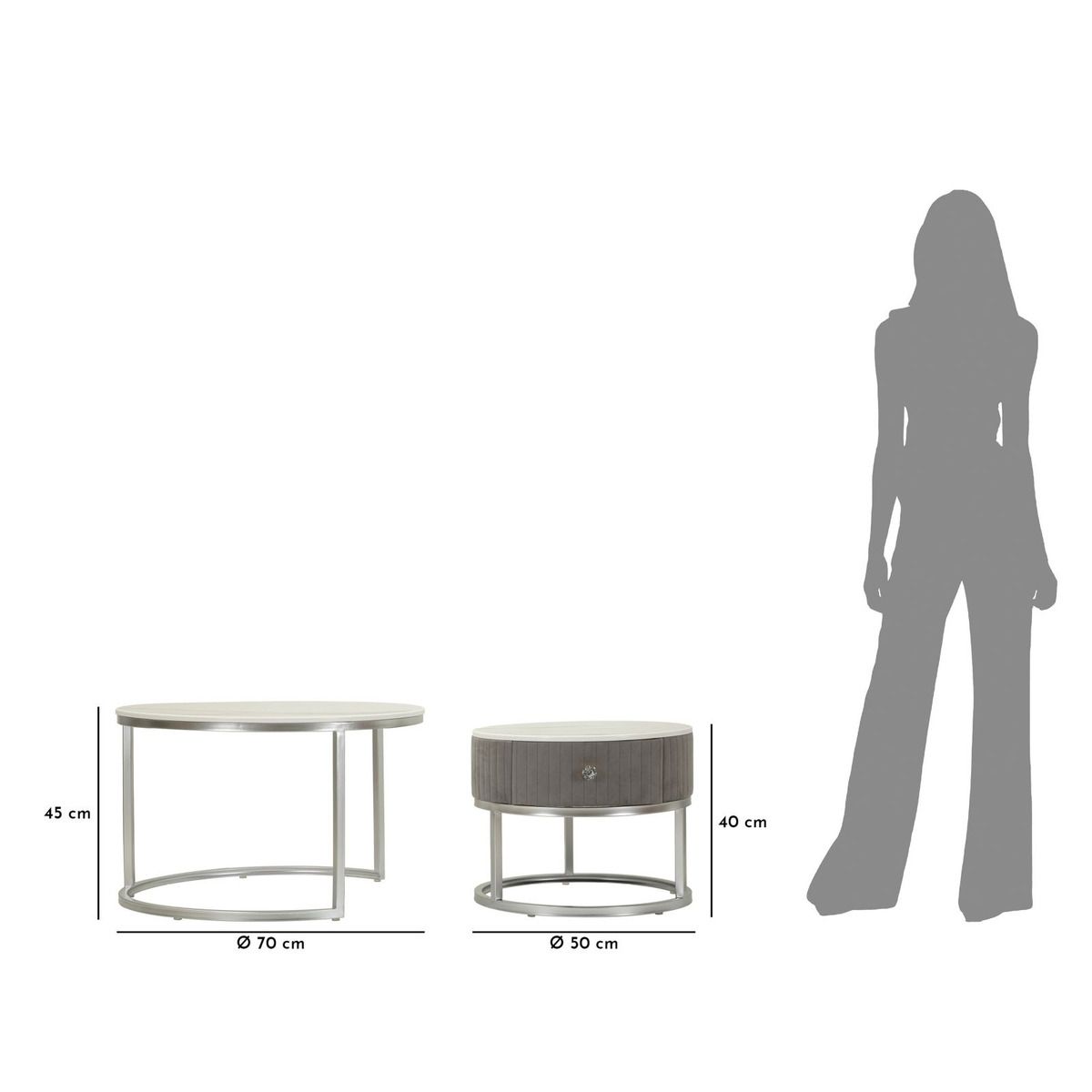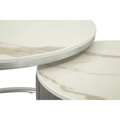 | Description | Greys coffee tables, modern pair with silver metal frame and marble-effect top, perfect for contemporary and refined environments. |