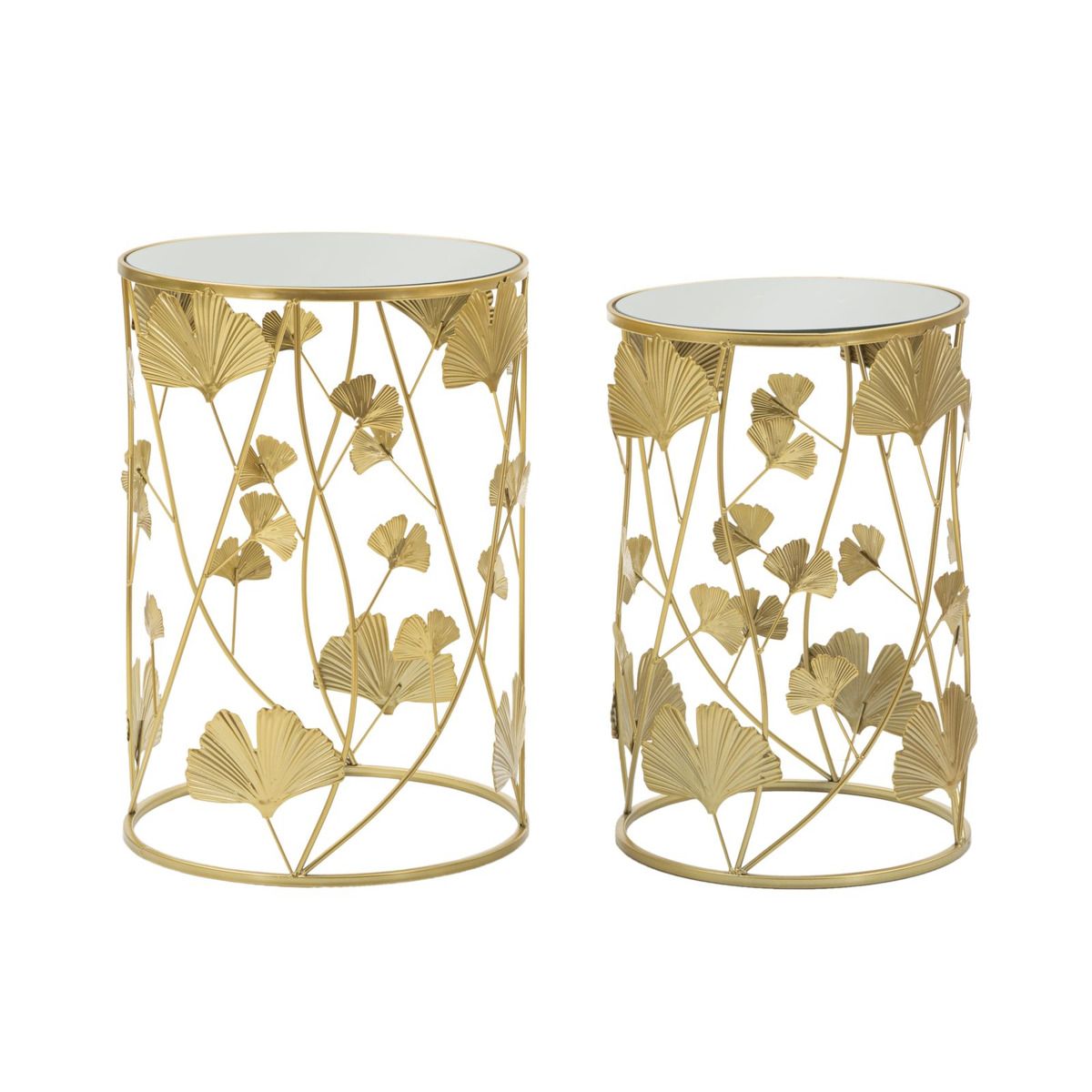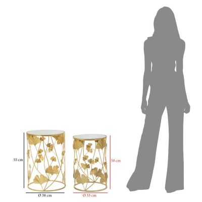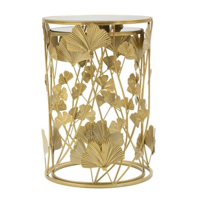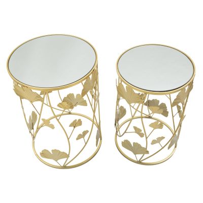 | Description | Pair of small round tables in gilded metal with mirrored glass top. The unique and elegant decoration composed of leaves gives a touch of uniqueness to the article. |