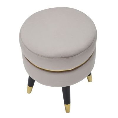 | Description | Wood and gray velvet stool. Seats with a golden finish inspired by the dressing rooms of Hollywood's great divas. Ideal for placing in the bedroom or living room to feel like a star. |