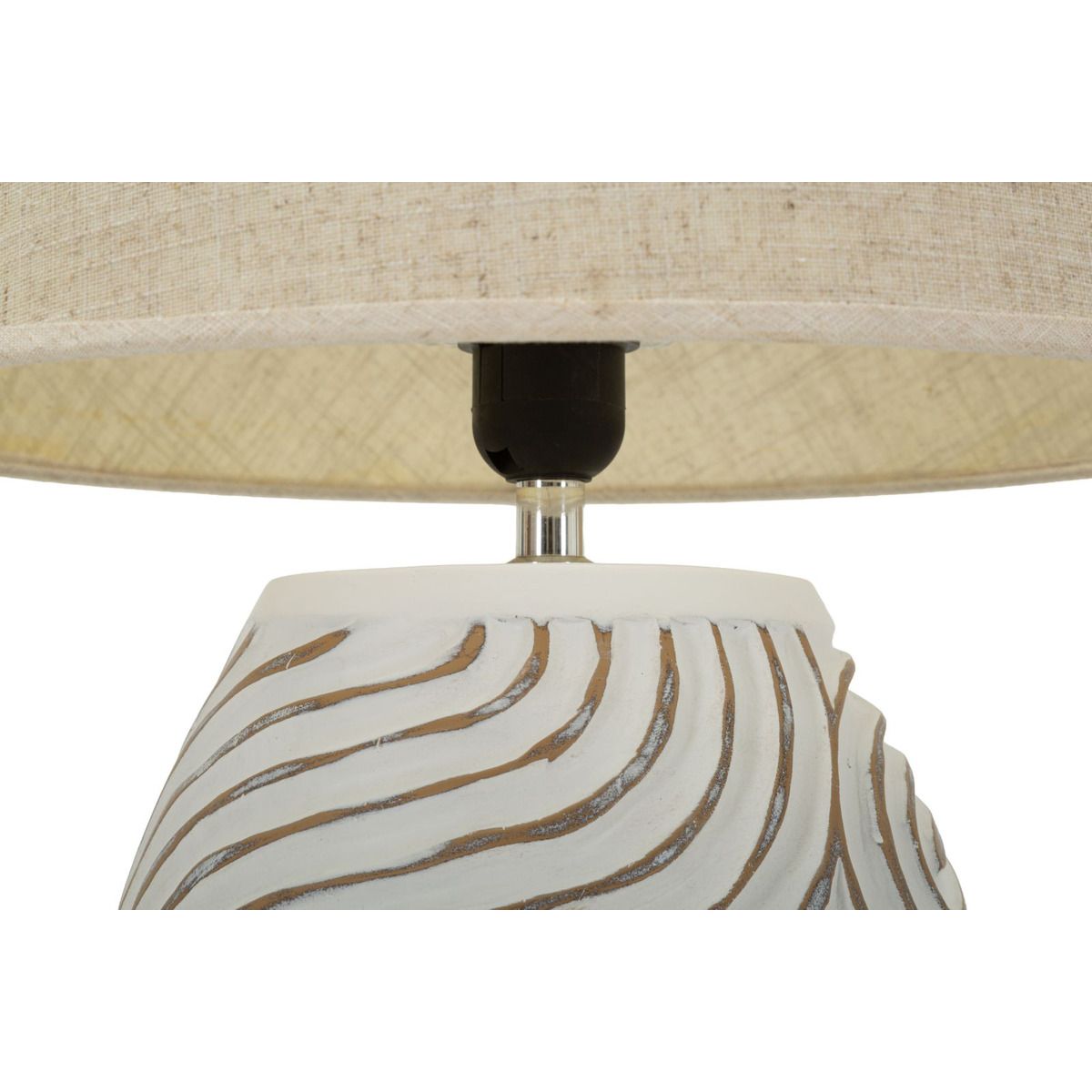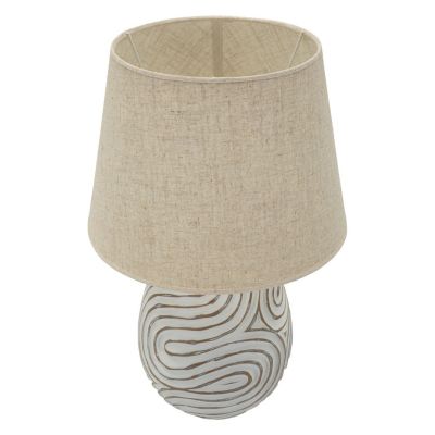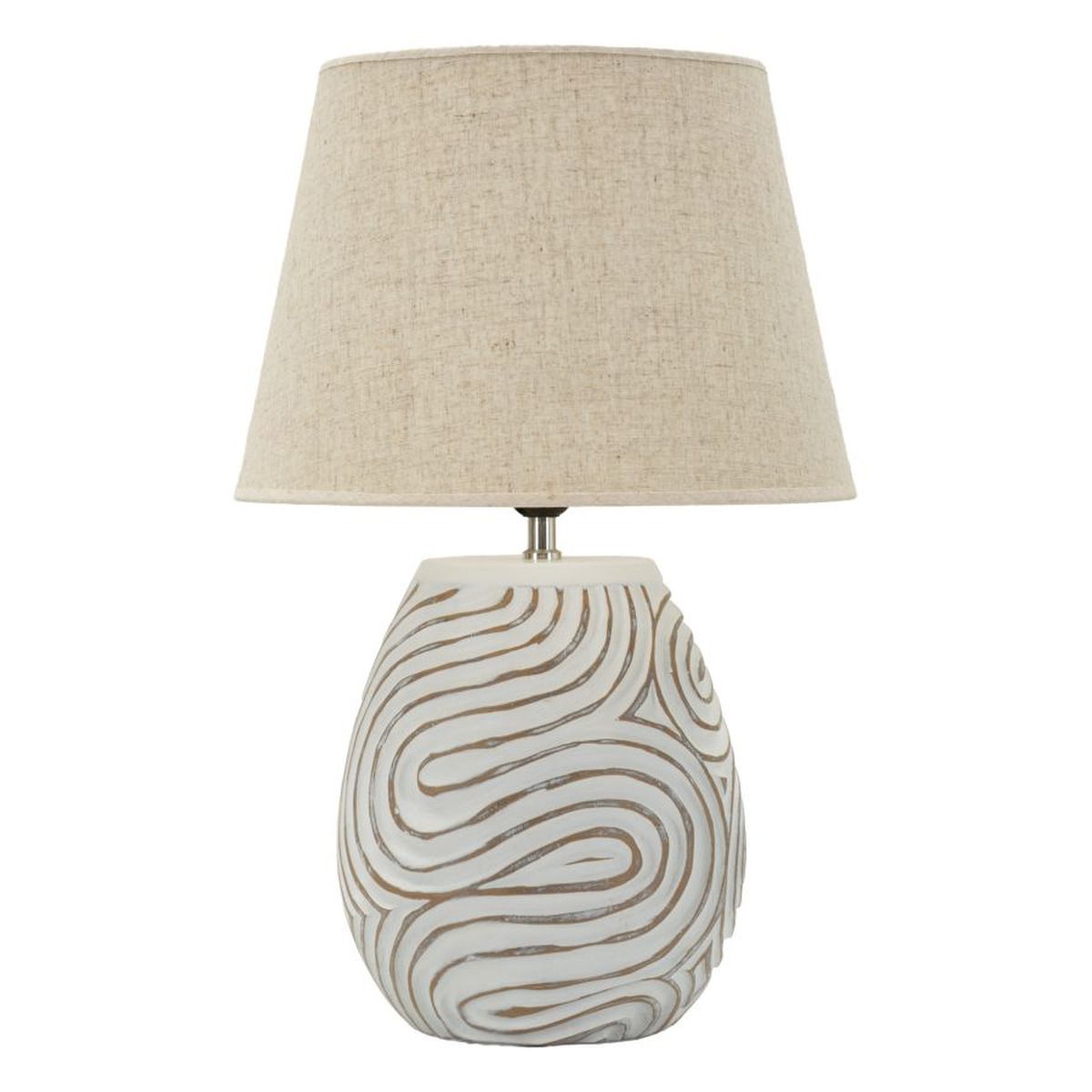 | Description | Oval resin base with relief engravings in a fluid and modern design. The light gray fabric lampshade completes a decorative lamp ideal for living areas or bedrooms with a minimalist and sophisticated style. |