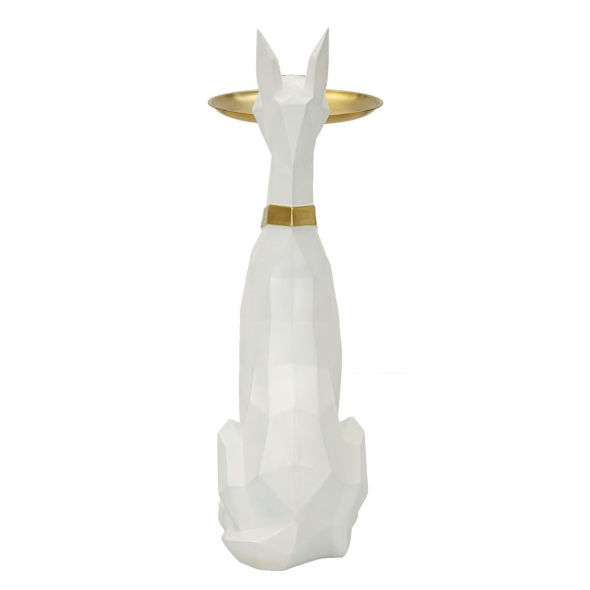 | Description | Statue of a pitbull dog with an origami-inspired design. With its mouth it holds a practical golden tray that can be used as a container. |