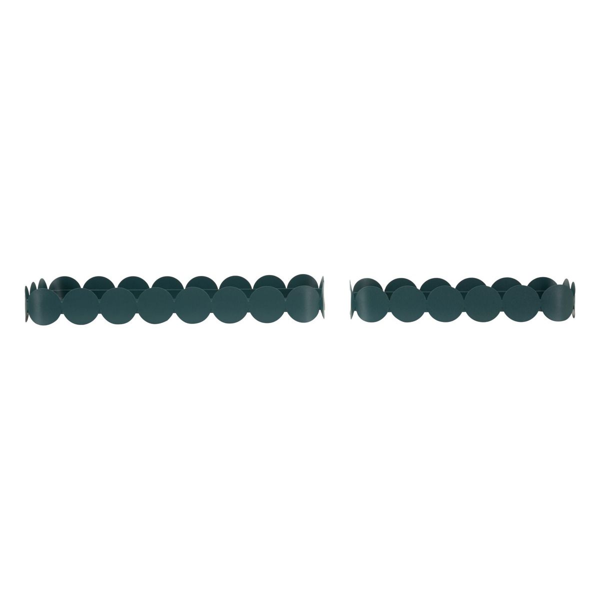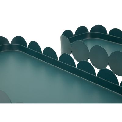 | Description | Pair of rectangular trays in teal metal with a rounded profile and continuous circles. The intense, contemporary color enhances the essential shape, perfect for modern or industrial chic spaces. |