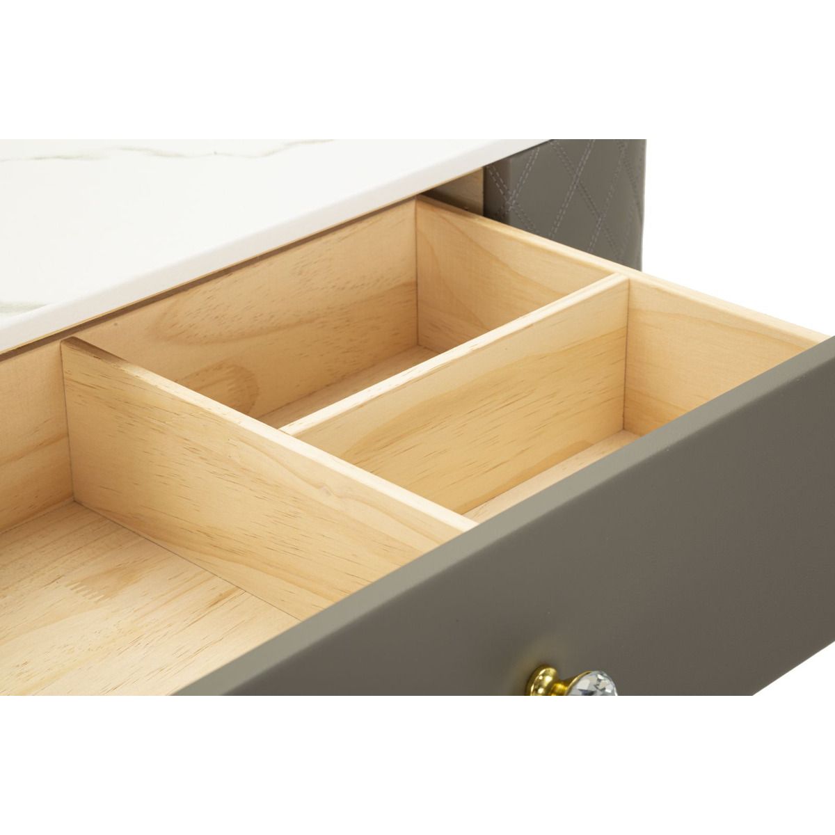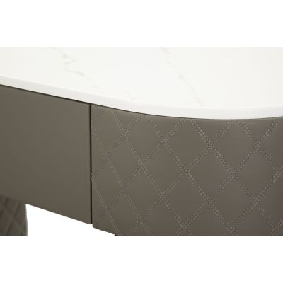 | Description | A luxurious and refined dressing table in quilted imitation leather and a golden metal frame, the imitation marble top suggests luxury, and the diamond knobs shine with glamor. Complete with a round pouf in quilted imitation leather with a golden metal base. |