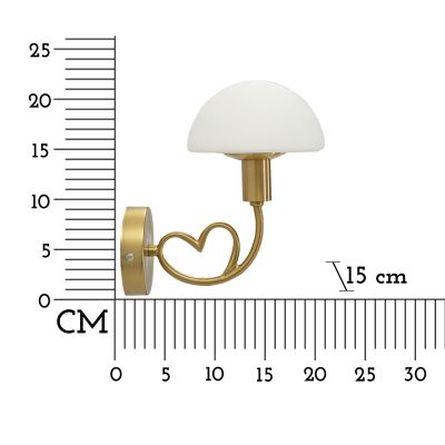 | Description | Wall lamp in gold-plated metal with an elegant heart and a white opaque glass lampshade. |