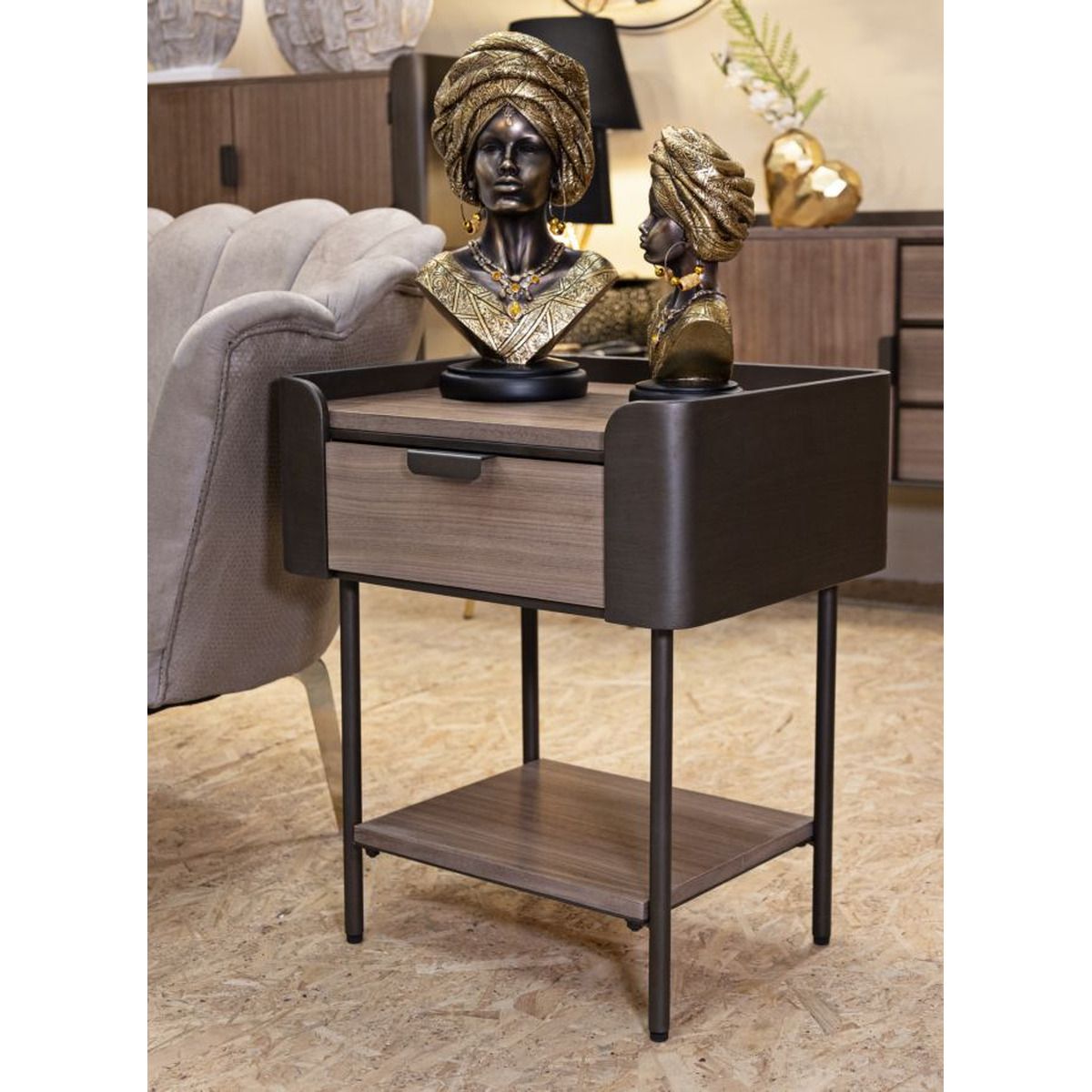 | Descrizione | Comodino in metallo e legno con cassetto e ripiano. Il particolare design dalle linee semplici ma accattivanti rende l'articolo perfetto per ogni tipologia di arredo. Prodotto da assemblare. |
