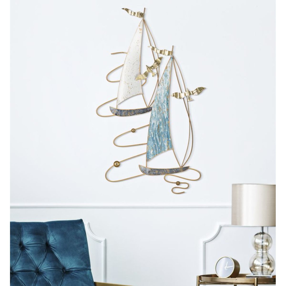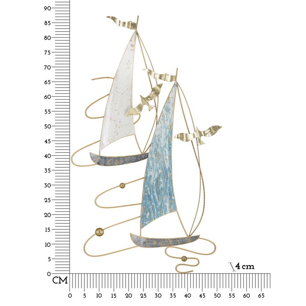 | Descrizione | Pannello decorativo 3D da parete in metallo composto da barche a vela e gabbiani in mare. |