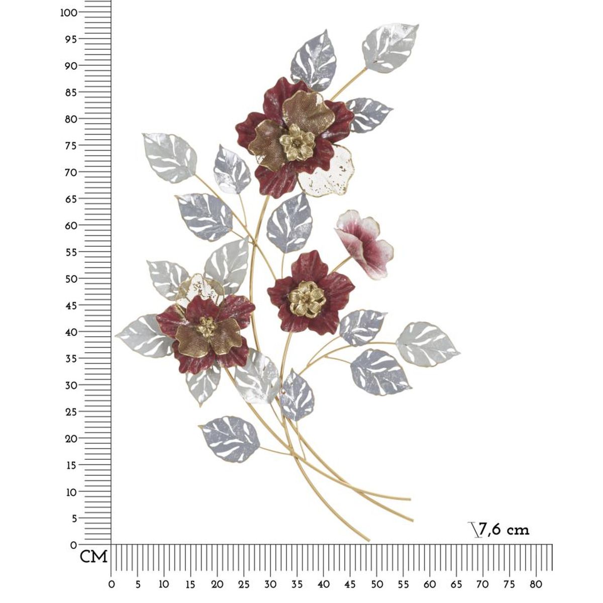 | Descrizione | Pannello decorativo 3D da parete in metallo raffigurante dei fiori dai colori accesi e delle foglie. |