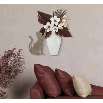| Descrizione | Pannello decorativo 3D da parete in metallo raffigurante un gatto che gioca con un vaso di fiori. |