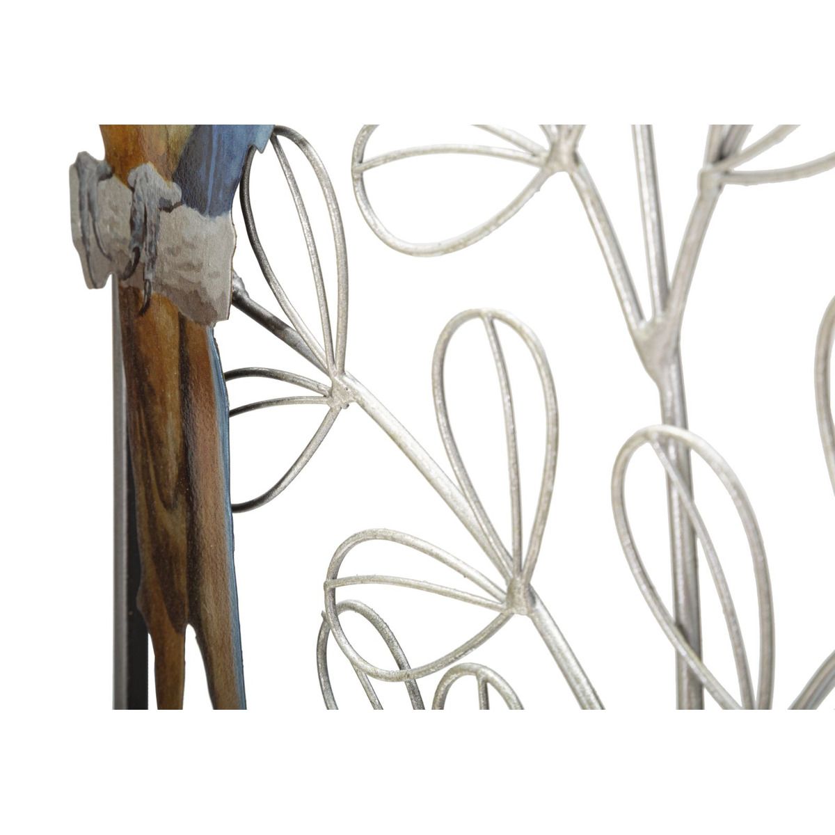 | Descrizione | Pannello decorativo 3D da parete in metallo composto da un pappagallo colorato su ramo con foglie in un'elegante cornice rettangolare. |