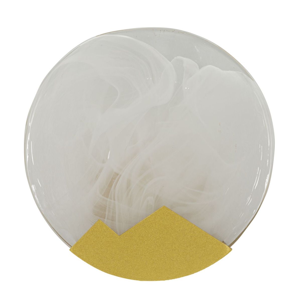 | Descrizione | Lampada da parete in vetro opaco dalla forma circolare con elegante base geometrica in metallo dorato. |