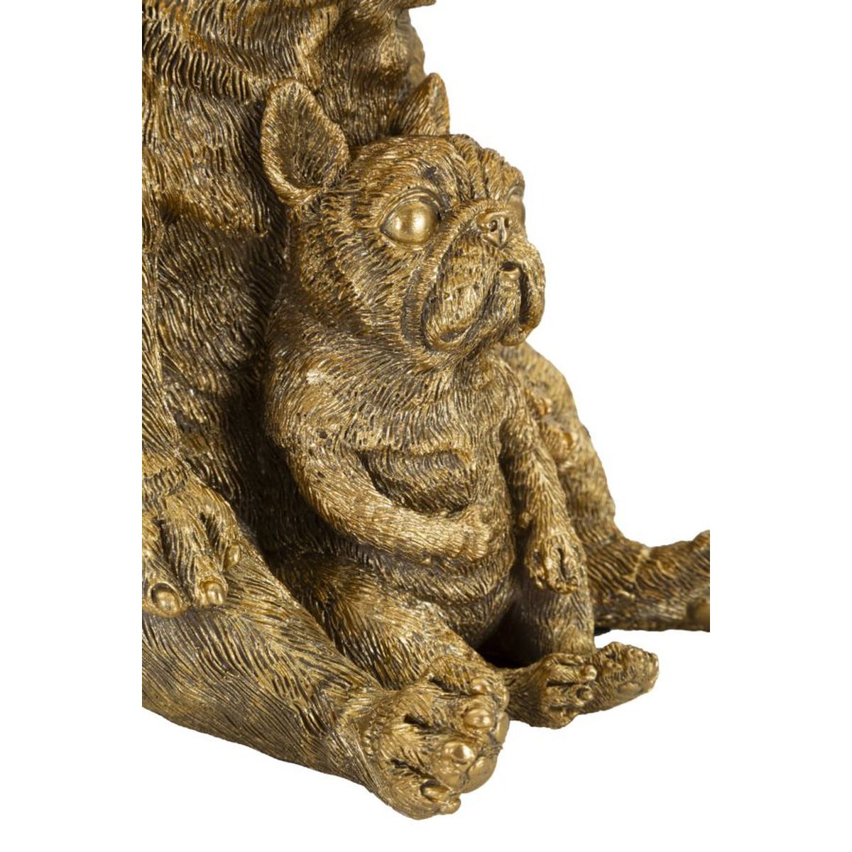 | Descrizione | Lampada da tavolo in resina dorata a forma di coppia di cani. Completa di paralume in tessuto nero. |