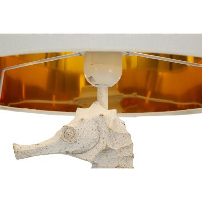| Descrizione | Lampada da tavolo in resina impreziosita da due simpatici cavallucci marini. Completa di paralume in tessuto bianco. |