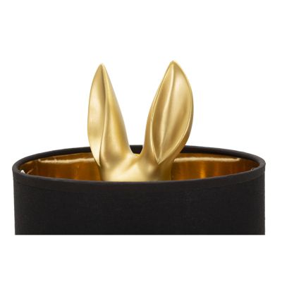 | Descrizione | Lampada da tavolo a forma di coniglio dorato nascosto nel paralume in tessuto nero. |