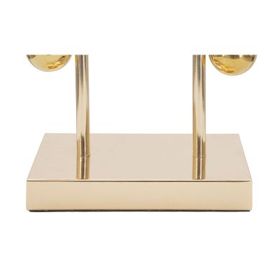| Descrizione | Lampada da tavolo in metallo dorato dal particolare design lineare impreziosito da sfere decorative e paralume in tessuto nero. |