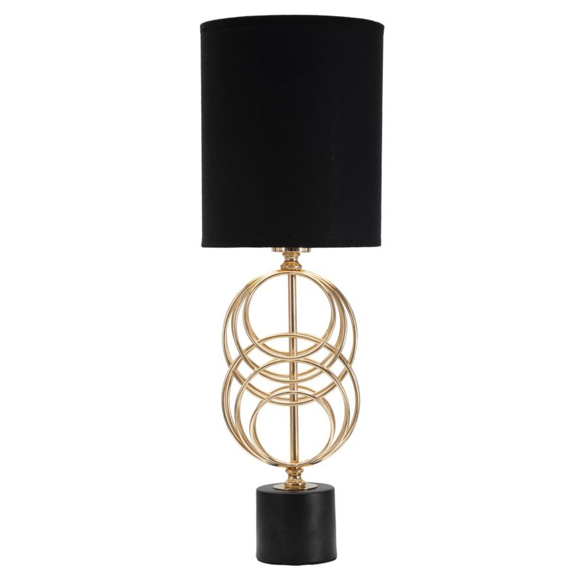 | Descrizione | Elegante lampada da tavolo in stile glam in metallo dorato e paralume in tessuto nero. I decori metallici concentrici donano un tocco di unicità ad ogni tipo di arredo. |