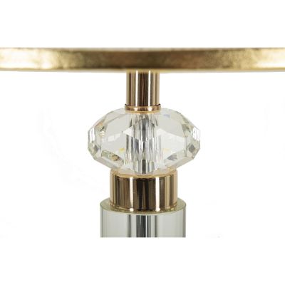 | Descrizione | Elegante lampada da tavolo in metallo dorato con applicazioni trasparenti. Completa di paralume in tessuto beige con finiture dorate. |